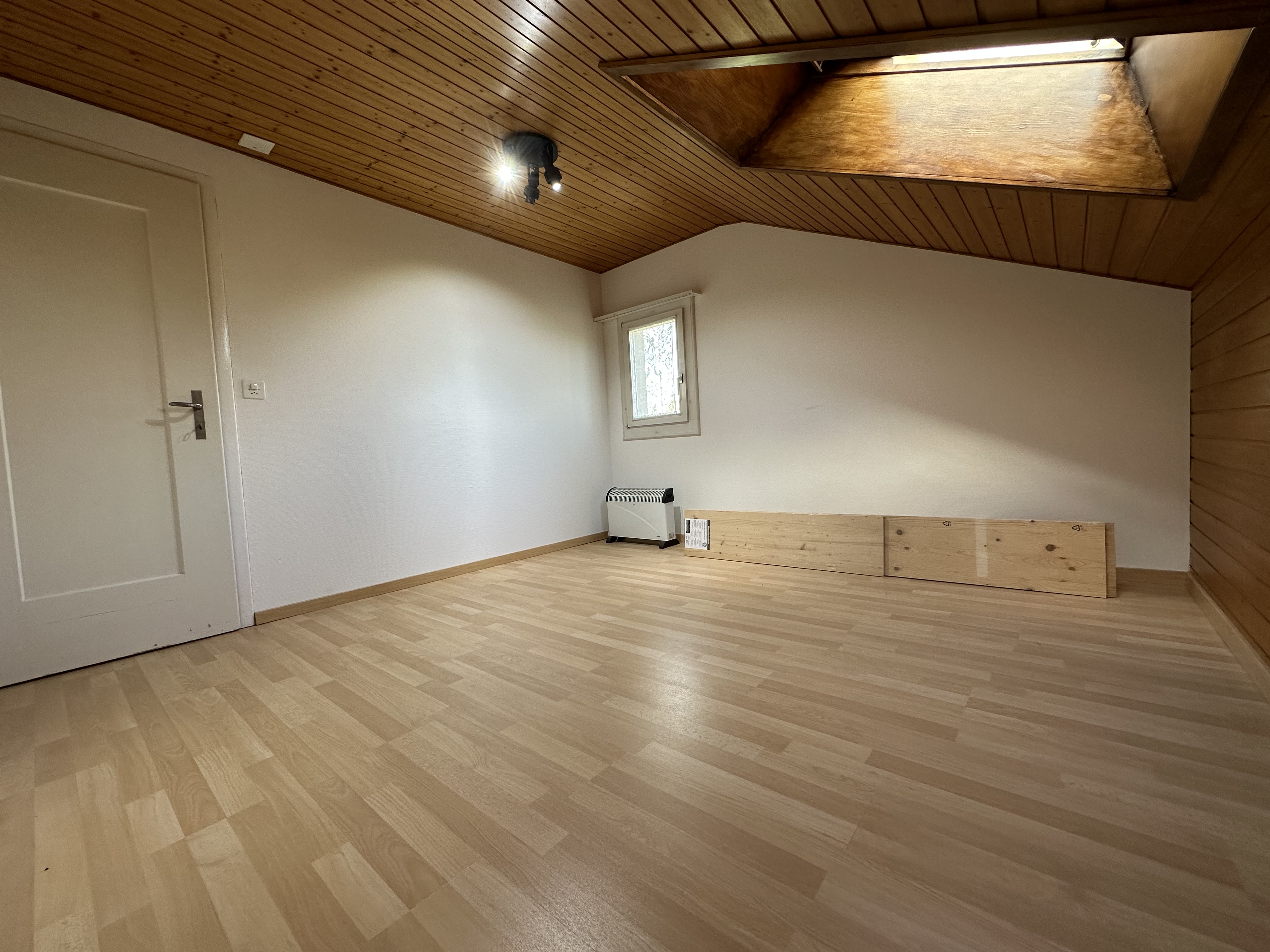 big room in upper floor, floor and walls freshly renovated, with roof pitch