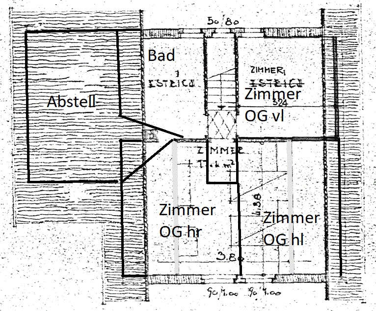 - Upper floor: 3 freshly renovated rooms and an older bathroom,