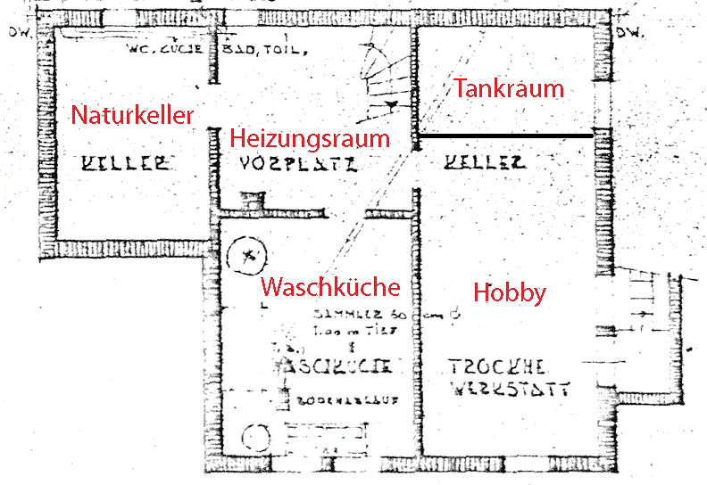 - Basement: boiler room, natural cellar room (for wine cellar or stock), laundry room, big hobby room with separate entrance